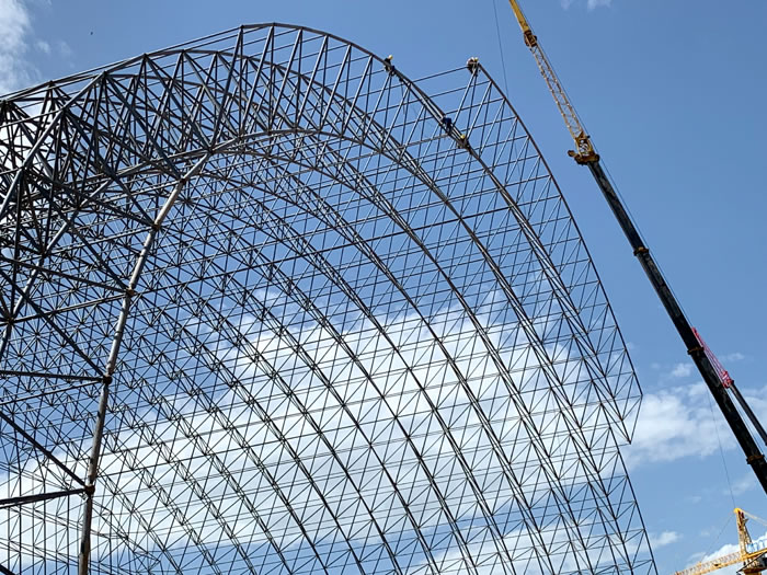 (2)网架加工前应对现场尺寸进行复测,确认无误后方可进行加工、安装;网架制作、运输、安装应遵守《空间网格结构技术规程》JGJ7-2010、《钢网架连云港螺栓球节点》JG/T 10-2009、《钢网架连云港螺栓球节点用高强度螺栓》 GB/T 16939-2016、《钢结构连云港工程连云港施工规范》 GB50755-2012、《钢结构连云港工程施工质量验收标准》 GB50205-2020。